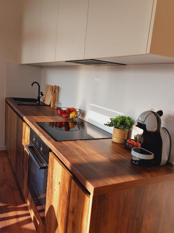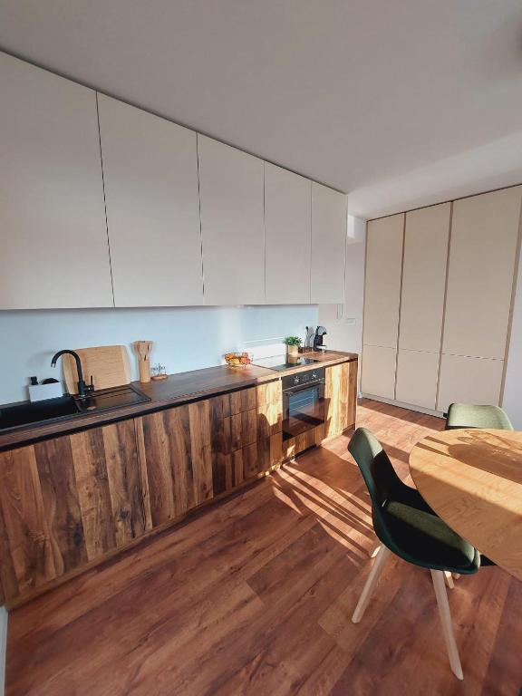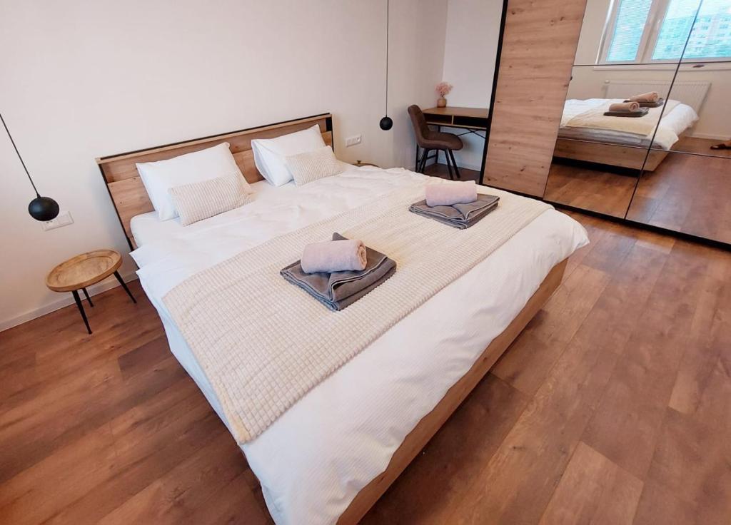 PB Comfort Stay ponúka priestranný a svetlý interiér navrhnutý s dôrazom na pohodlie a funkčnosť. Dve spálne a obývacia časť prepojená s kuchyňou vytvára príjemný priestor na oddych, spoločné chvíle aj prácu. Z balkóna apartmánu si vychutnáte krásne výhľady na zeleň a nový mestský park, ideálne miesto na rannú kávu alebo večerný oddych.